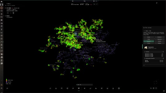 ノードベースのシンプル設計で、星系・リージョン・ジャンプ経路の把握が大幅に向上。ジャンプ可能距離のオン/オフ切り替えも可能。