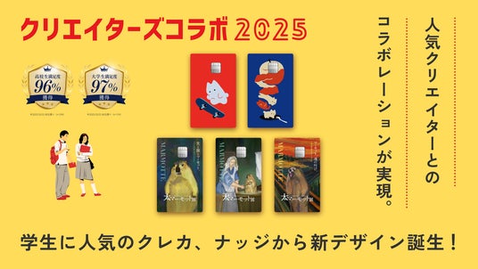 ナッジカード「学生部」、「デザイン部」のクラブ限定でリリースされる今回のコレクションは、ゆるかわイラストをテーマに、Z世代を中心にSNSで支持される人気クリエイターとコラボレーション。 “見ていて癒される”デザインをカードに落とし込みました。