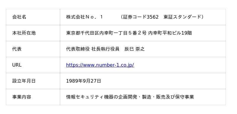 株式会社No.1は、「日本の会社を元気にする一番の力へ。」を経営理念に掲げ、全国の中小企業向けにソリューションを提供しています。主力である情報セキュリティ機器、複合機・ネットワーク機器・ビジネスフォンの販売及び保守に加え、業務改善支援、BCP対策など、幅広い領域でサービスを展開しています。全国に張り巡らされた営業・サポートネットワークを通じて、お客様に寄り添った伴走型の支援を強みとし、中小企業の成長を支え続けています。