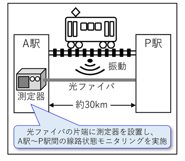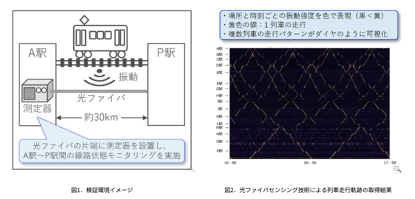 今後は、線路沿いに敷設された通信用光ファイバーを振動センサーとして活用することで、新たな設備投資を抑えつつ、広域かつ高精度な鉄道設備や周辺環境の常時モニタリングを実現するという。