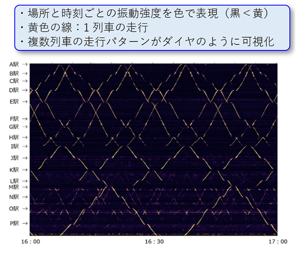 光ファイバセンシング技術による列車走行軌跡の取得結果