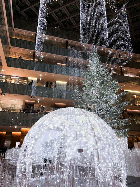 今年はテーマ通り、1階アトリウムが一面銀世界に変身。光り輝く雪景色が楽しめます。期間中は毎日30分に1回、ツリーと草原のイルミネーションが音楽に合わせて光り輝く「白銀の草原ライティングショー」が行われます。