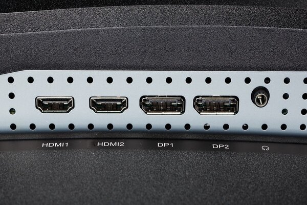 接続端子は、HDMI 2.0ポートを2つ、DisplayPort 1.4ポートを2つ搭載。なお、180Hzのリフレッシュレートを発揮できるのはDisplayPort接続時で、HDMI接続では100Hzまで対応となる。