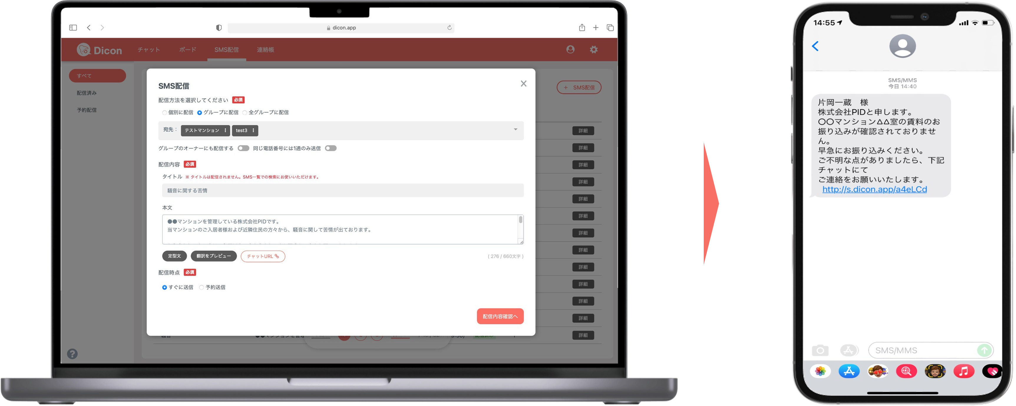 Diconは、多言語対応のSMSとチャットを活用し、現場・スタッフ・外国人との“属人的な連絡”をチームで共有・管理できる業務連絡のDXツールです。アプリ不要、翻訳は自動、履歴はすべて記録。誰でも直感的に使えるため、対応漏れや情報共有のミスを最小限に抑えます。