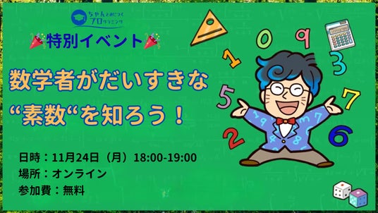 【無料特別イベント】数学者がだいすきな"素数"を知ろう!11/24に小中学生向け特別イベントを開催決定