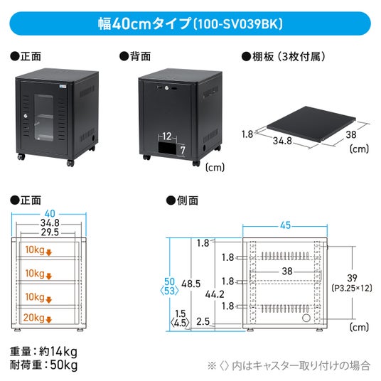 機器収納ボックス 幅40~60×奥行45×高さ53cm ネットワークラック データセンター 中型 サーバー 通信機器 NAS ルーター ハブ 黒 完成品