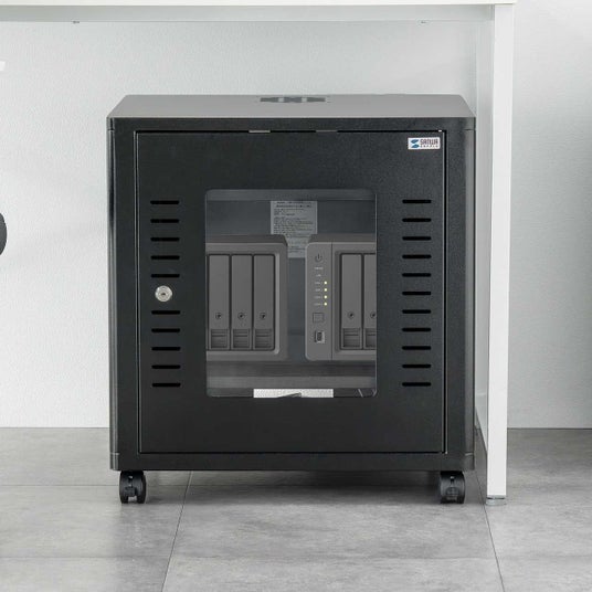 ●ネットワーク機器やNAS、録画機器などをまとめて収納できるスチール製の堅牢な機器収納ボックスです。