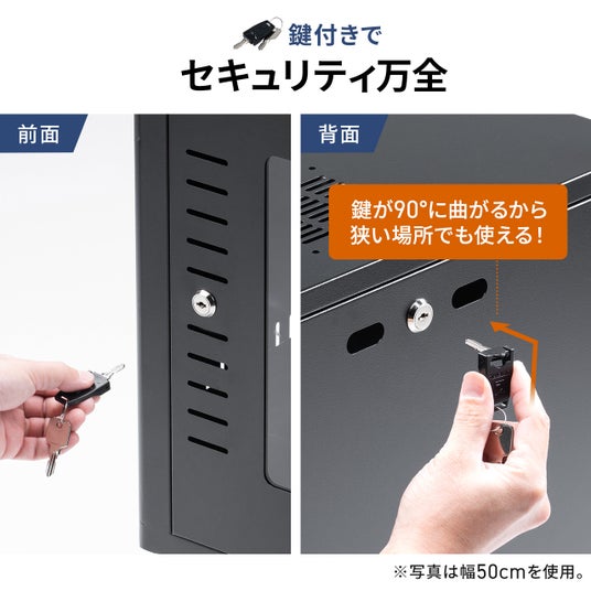 ●前扉と背面パネルには鍵を備え、不正開閉を防止する高いセキュリティー性を確保しています。