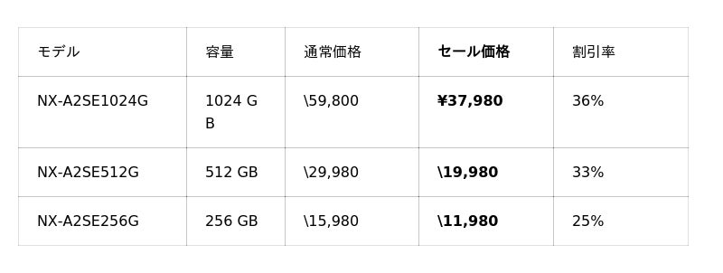 最大42%OFFのビッグセール!人気のCFexpress(TM) Type Bメモリーカード「NX-B3SEシリーズ」をはじめとした57アイテムがお買い得!