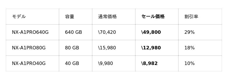 Amazon Nextorage公式ストア セール対象商品ページ(Imaging)▶