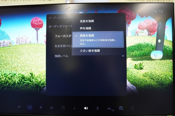 さまざまなアクセシビリティ機能を備えるPS5で、2025年4月に追加されたのが「オーディオフォーカス機能」である。これは、ユーザーに合わせて音を聞き取りやすく調整する機能で、「低音」「声(中音)」「高音」「小さな音」の音域を強調できる。強弱や左右別で調整することも可能だ。