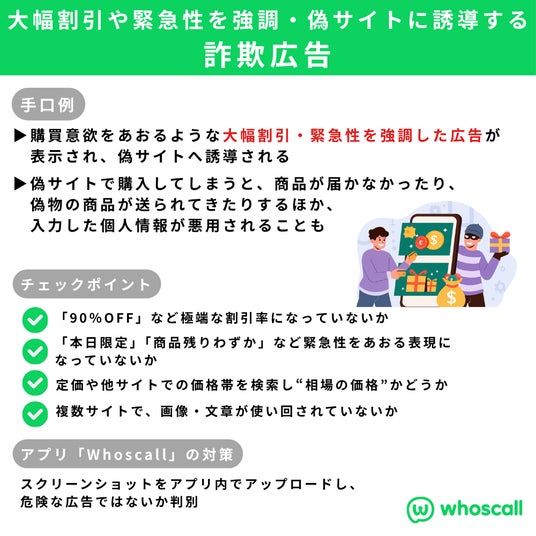 3.大幅割引や緊急性を強調・偽サイトに誘導する「詐欺広告」