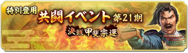 共闘イベントとは、全国のプレイヤーとともに、強力な武将と戦うイベント。今回は敵総大将として、甲斐宗運が立ちふさがる。
