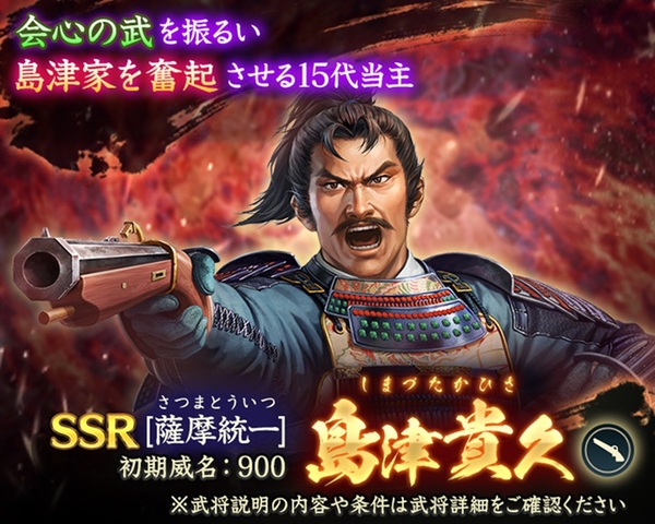 ■SSR【薩摩統一】島津貴久が単独ピックアップ! 「特別登用・共闘 第21期『決戦 甲斐宗運』」開催