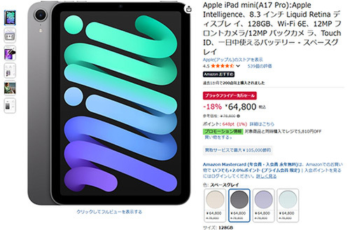Appleの高性能タブレット「iPad mini(A17 Pro)」(128GB、Wi-Fiモデル)が、Amazonブラックフライデー先行セールに登場しました。