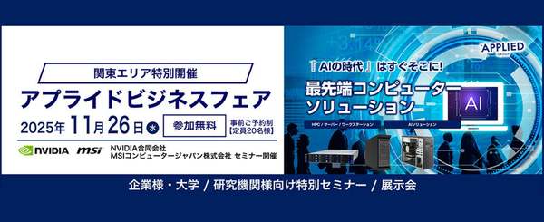 エムエスアイコンピュータージャパンは、最新のAIスーパーコンピューター「MSI EdgeXpert」を、11月26日に開催されるアプライド主催の「アプライドビジネスフェア」で紹介する。会場はアプライド東京本部で、法人利用者や個人事業主は無料で参加可能だ。