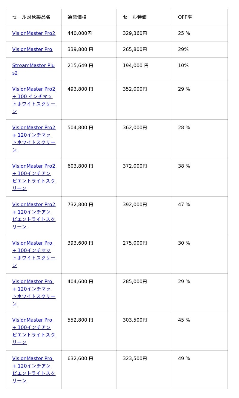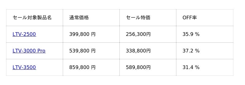 【 「Amazon ブラックフライデー」・先行セール期間中の AWOL Vision 主なセール対象プロジェクター製品 】