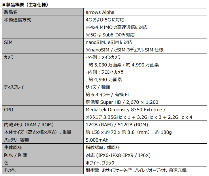 ※arrows Alpha、arrows AIは、FCNT合同会社の商標または登録商標です。