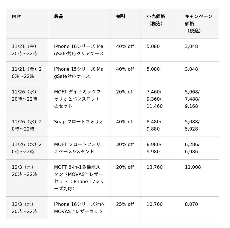 2025年度グッドデザイン賞を受賞したMOFT 8-in-1多機能スタンド、米TIME誌「Best Inventions 2025」を受賞したMOFT Snap-On スマホスタンドも今回の割引対象となります。