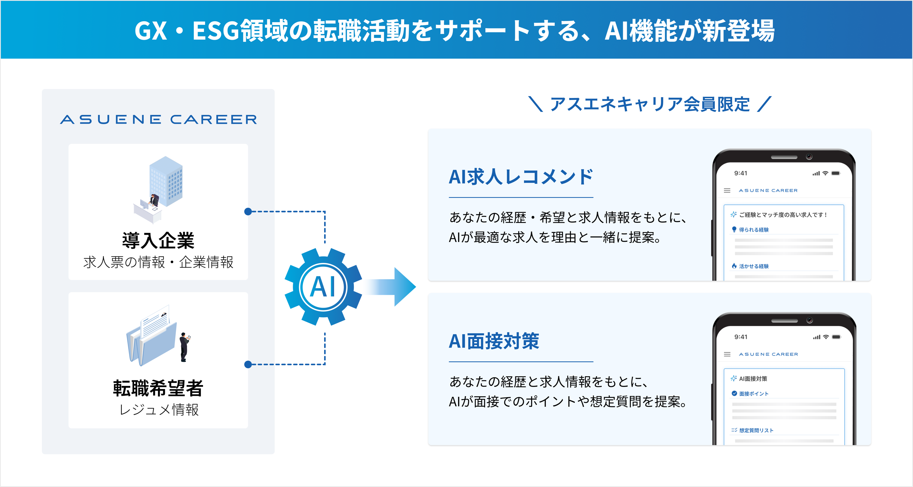 GX・ESG人材特化型転職プラットフォーム「ASUENE CAREER」に「AI面接対策機能」と「AI求人レコメンド機能」を追加