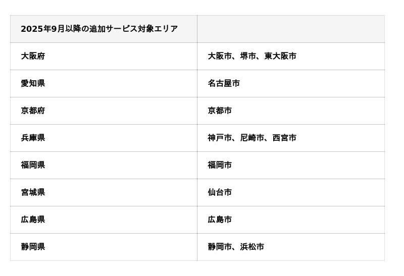 サービス対象エリアが急拡大!2025年9月以降の追加エリア