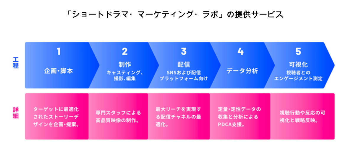 当ラボは、各社のノウハウを掛け合わせることで、ショートドラマの企画・制作にとどまらず、認知度や利用意向の向上などのマーケティング成果の創出ならびにその定量的な可視化までをワンストップで提供し、エンターテインメントとマーケティングを融合させた新しいブランド体験の創出をリードしていきます。