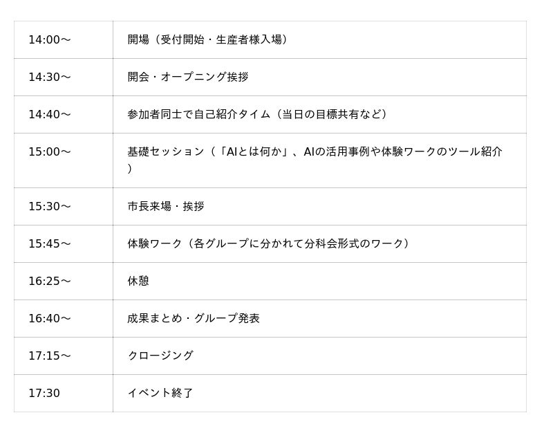 事前準備: PC/スマホ/タブレットは各自持参(AI活用体験に使用)