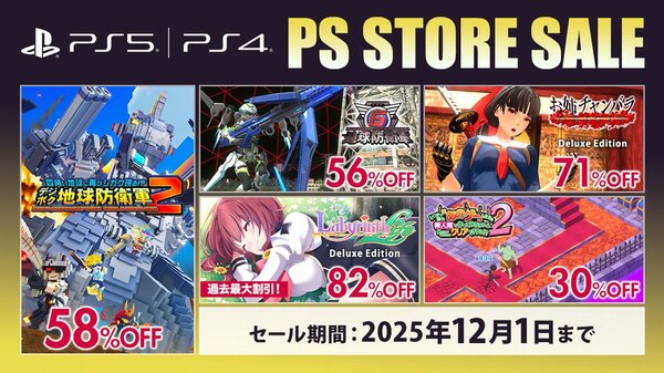 ディースリー・パブリッシャーは11月21日、PlayStation 5&PlayStation 4ダウンロードゲームや追加コンテンツが最大90%オフで購入できるPlayStation Storeのセール「BLACK FRIDAY」への提供タイトルを公開。セール期間は、2025年12月1日まで。