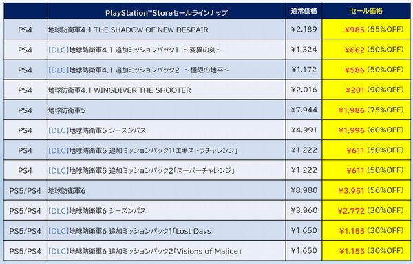 今回のセールでは、『地球防衛軍6』『デジボク地球防衛軍2』などEDFシリーズゲーム本編やシーズンパス、追加ミッションが大幅割引。『デジボク2』シーズンパスと追加ミッションパック「ロボソラスvs.機械化軍団」は過去最大割引の40%オフとなっている。