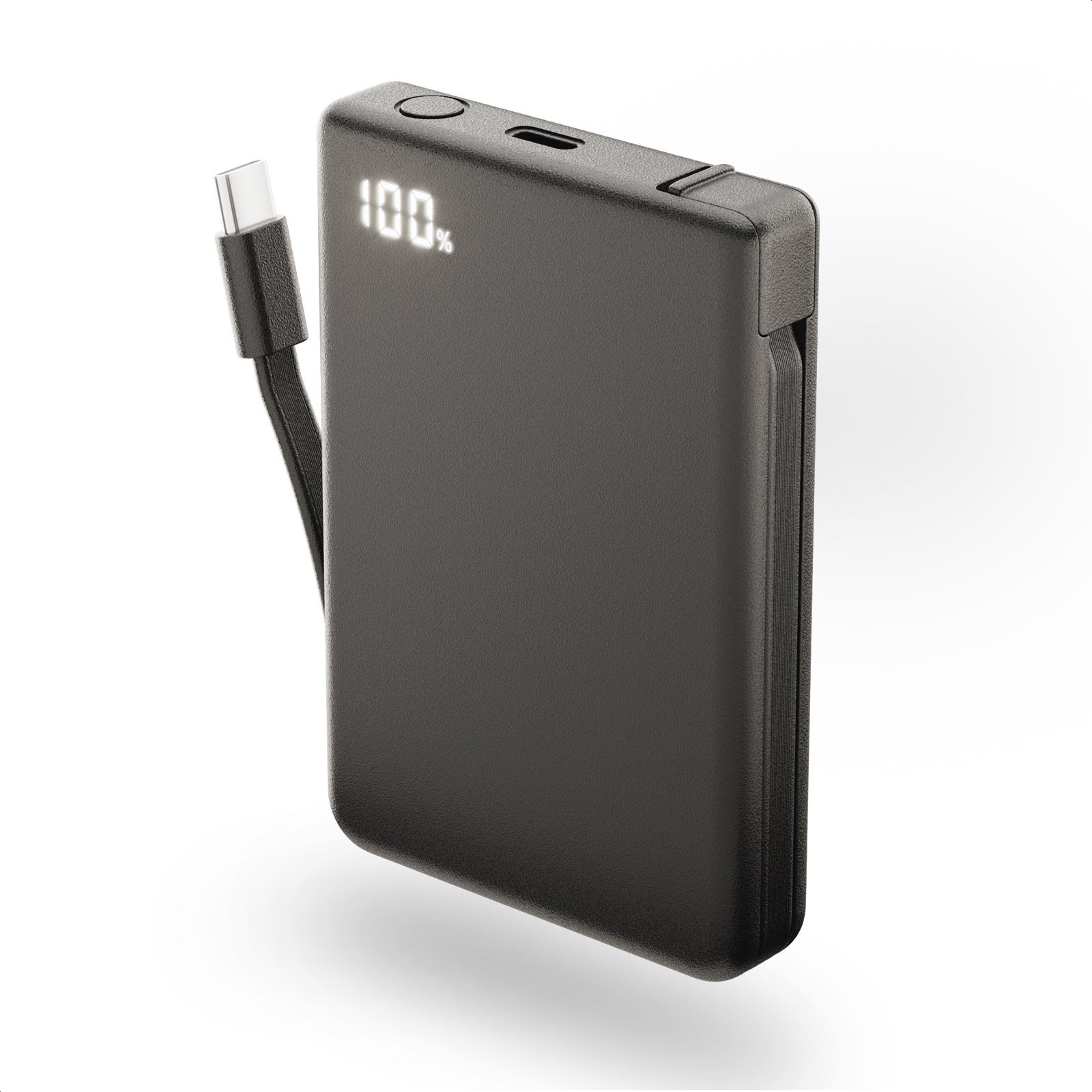 本製品は、スリムで軽く、スマホに“ピタッ”と吸着したまま使えるケーブル内蔵モバイルバッテリーです。マグネット吸着対応のスマホやケースにしっかり固定され、重ね持ちのまま内蔵USB-Cケーブル(最大15W)をサッと引き出して充電できます。