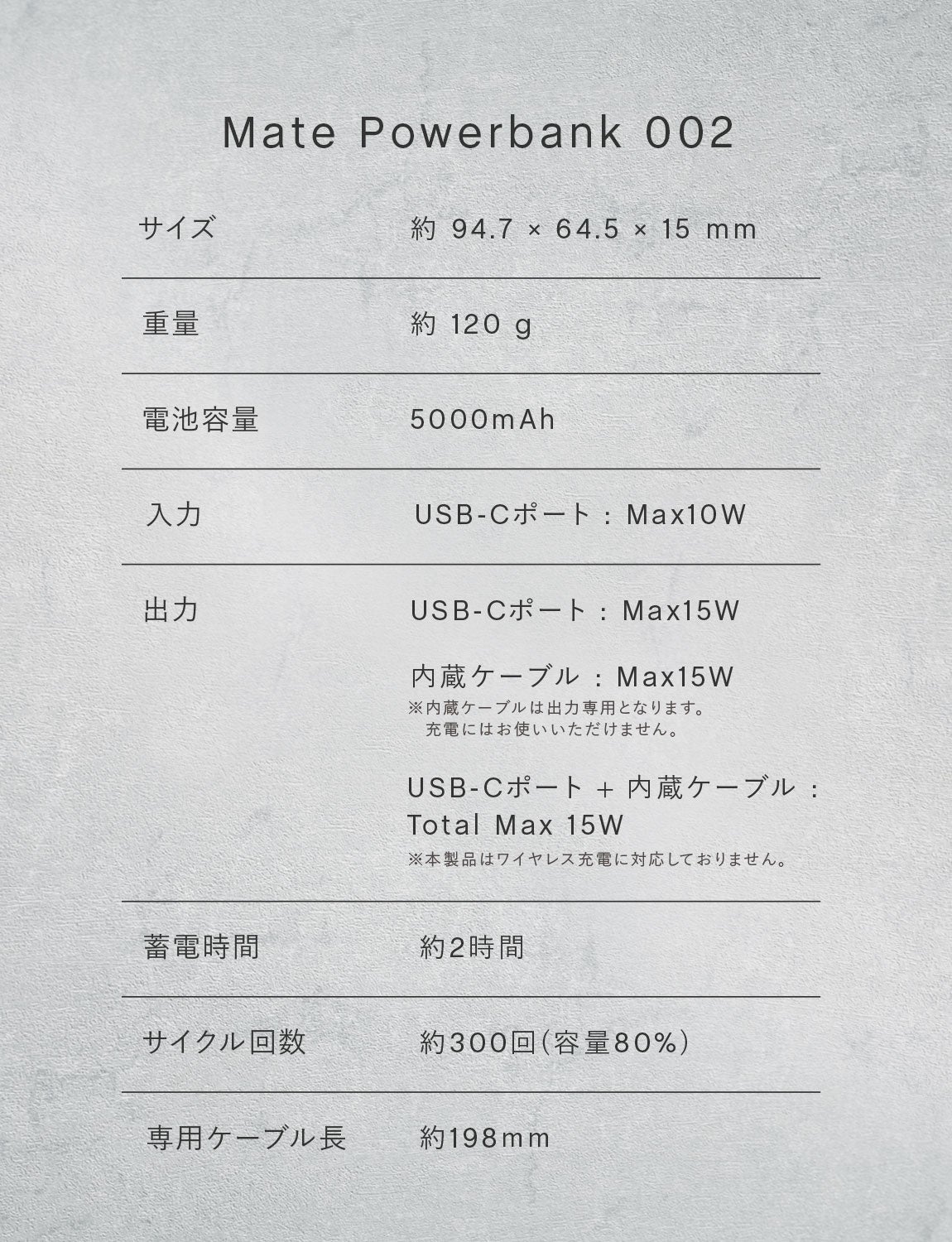 5000mAhの容量で外出先でも安心して使えるほか、約120gの軽量コンパクト設計でバッグやポーチにも収まりやすいのが特徴です。充電器やケーブルなどMateシリーズとのコーディネートも楽しめる、新たなデイリーパートナーとして登場します。