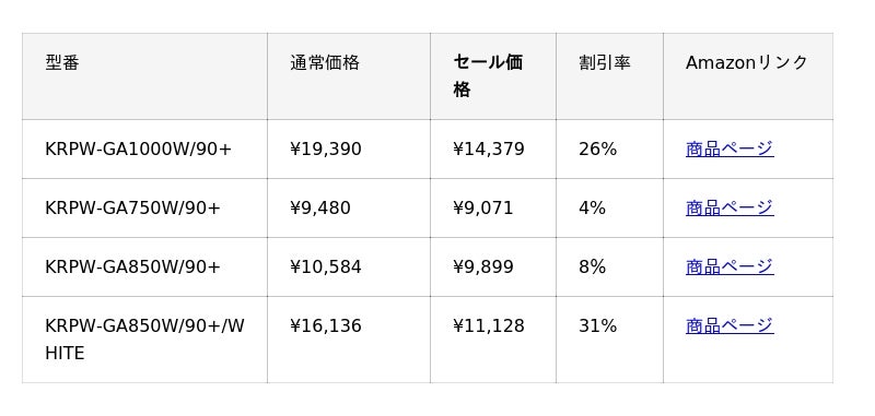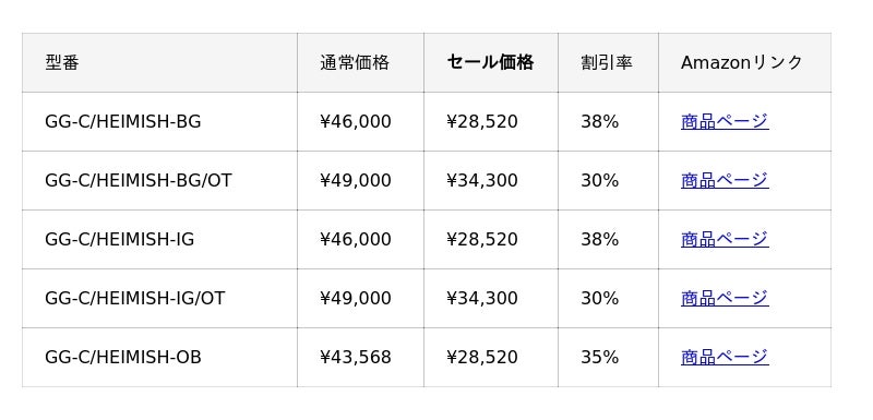 <セール対象製品一覧>
