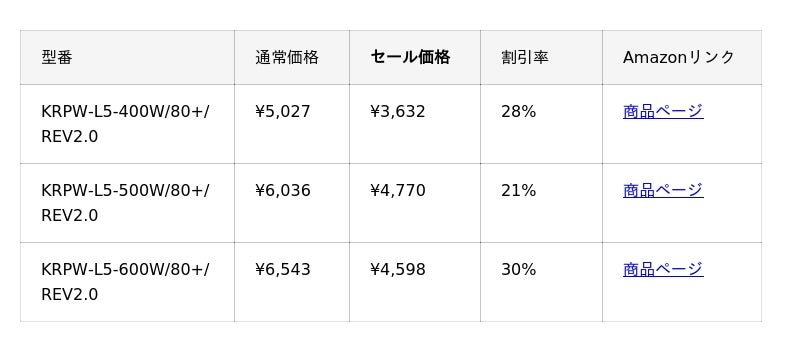・80PLUS STANDARD取得 ATX電源 L5 Rev2.0シリーズ