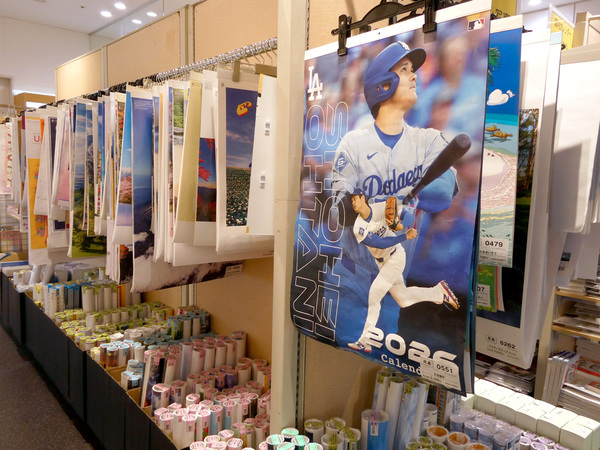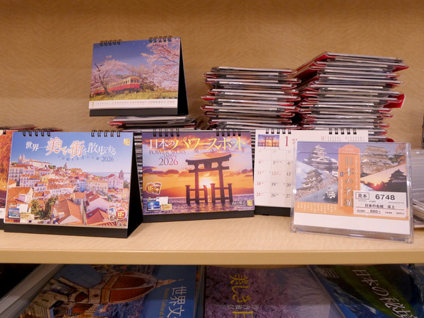 「2026年 丸善 国内外カレンダーフェア」は手帳フェアほどの売り場面積はないが、実用に特化したもの、趣味に特化したものなど多数のカレンダーが展示されている。