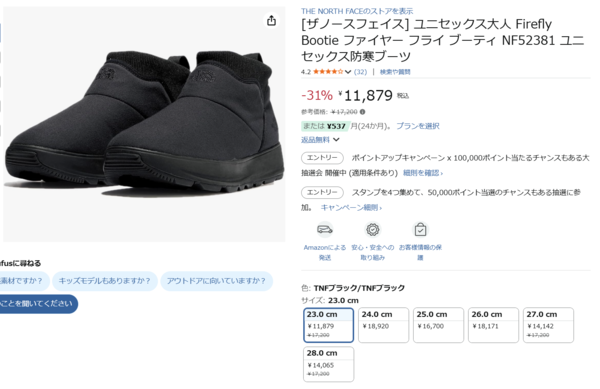THE NORTH FACEのFirefly Bootie(23.0cm)が31%OFFの11,879円で手に入ります。
