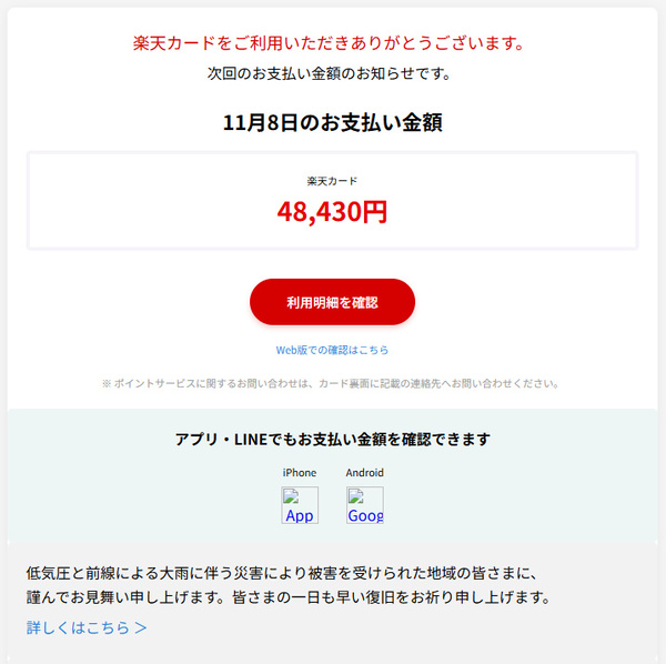 これはAmazonや楽天など、クレカを登録しているECサイトから不意にメールが届いても不審に思わないタイミングだからです。