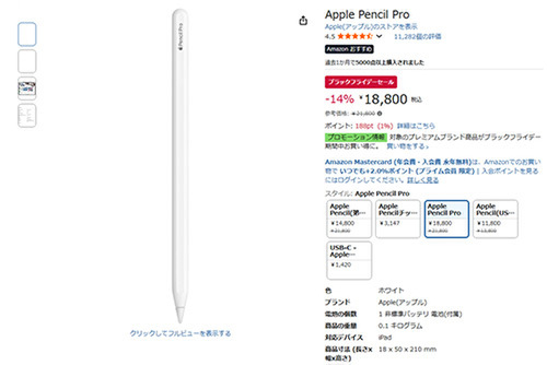 Appleのスタイラスペン「Apple Pencil Pro」が、Amazonブラックフライデーセールに登場しました。