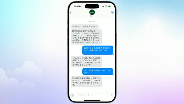 桜井さんは、働く女性を支援するコワーキングスペース事業の立ち上げを考えている。しかし、起業時の資金管理が悩ましい問題だ。そんな時、桜井さんに声をかけたのが、SMBCのAIエージェントだ。過去の面談記録を基に、人と対話をしているかのように解決策を提案してくれる。