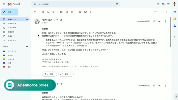 食品・飲料メーカーのPepsiCoは、営業のリソース不足で売上の半分を占める中小企業まで手が回らない状況を、Agentforce Salesで改善。個人商店から大手チェーンまで、すべての顧客に手厚いサポートを展開し、売上げ機会を逃さない体制を構築している。