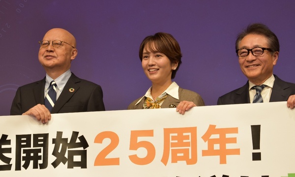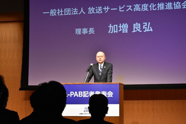 記者発表会の開会にあたり、A-PAB理事長の加増良弘氏が挨拶。BSデジタル放送が長年にわたる関係者の協力により発展してきたことに感謝の意を表し、4K8Kといった高度なテレビ技術をベースに日本のコンテンツ産業を成長させたいという願いを述べた。そして、BSデジタル放送が2025年12月1日に放送開始25周年を迎えるにあたり、NHKと民放5社による共同企画「BSデジタル放送25周年でスゴイ番組が勢ぞろい!新時代!年末はBSの番組を見ようよキャンペーン」を実施することが発表された。
