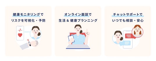 MamaWellでは、ウェアラブルデバイスを用いて心拍数や活動量などのバイタルデータを収集し、妊婦の健康状態をモニタリングします。収集されたデータをもとに、パーソナル助産師が個別に最適化された健康管理プランを提供し、妊娠合併症のリスク低減を目指します。チャットサポートによる相談は24時間対応で、妊娠中に直面する体調の変化や不安に寄り添います。助産師とのオンライン面談は、妊婦だけでなくパートナーも参加することを推奨しています。出産前から妊婦とパートナーが双方の感情を共有し、役割を理解することで、産後のスムーズな共同育児への移行を目指します。