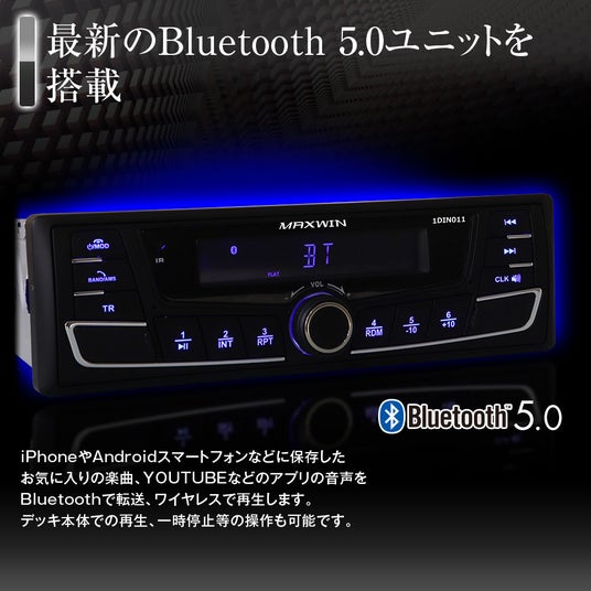 MAXWIN 1DIN010最新のBluetooth5.0ユニットを搭載したMAXWIN最新モデル。