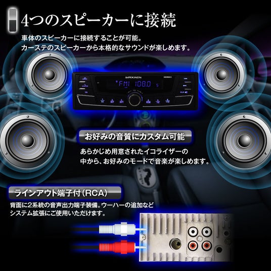 車体のスピーカーに接続することが可能。カーステのスピーカーから本格的なサウンドが楽しめます。
