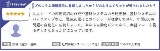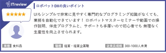 株式会社FCE (本社:東京都新宿区、代表取締役社長:石川淳悦、証券コード:9564)が提供する純国産RPAツール「RPAロボパットDX」は、アイティクラウド株式会社(以下:アイティクラウド 本社:東京都港区、代表取締役社長:黒野 源太)が実施するSaaSプロダクト比較・分析レポート「ITreviewカテゴリーレポート2025 Fall」のRPAツール部門において最も高い満足度を獲得し、14期連続で「顧客満足度No.1」を獲得いたしました。