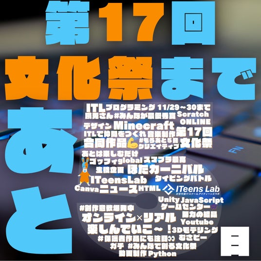 全国の小中高生がオンラインで学ぶITスクール「ITeens Lab(アイティーンズラボ)」は、第17回となるオンライン文化祭を開催します。生徒の作品発表やイベントの様子をYouTubeでライブ配信!