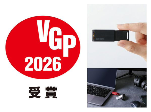 エレコムは11月25日、自社開発のUSB Type-Cコネクター対応外付けポータブルSSDが、「VGP2026」で「ポータブルSSD部門」の部門賞を受賞したことを公表した。