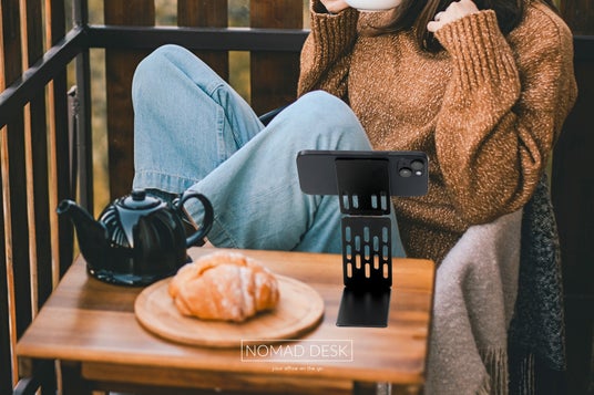 耐久性と高さ耐久性に優れたアルミニウム製のボディを採用。3つ折りを広げることで卓上スタンドとして最大約24cmの高さまで実現(無印iPhone縦置きの場合)、自然な目線の高さと正しい姿勢を確保します。長時間のデスクワークや会議における身体への負担軽減にも貢献します。