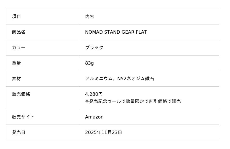 モバイルアクセサリーブランド『NOMAD DESK』を運営するノマドデスク(東京都中央区)は、多機能アルミ製3つ折りマルチスタンド「NOMAD STAND GEAR FLAT」を2025年11月23日より販売開始しました。