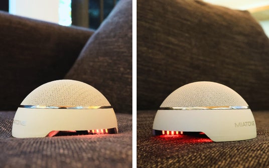 直径わずか9cmのコンパクト球体は、見た目に美しいだけでなく、付属のスタンドでデスクやベッドサイドにもすっきり置くことができる。