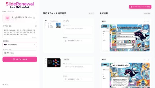 AIコネクティブカンパニーのコーレ株式会社(本社:東京都新宿区、代表取締役:奥脇 真人)は、既存のスライド資料のデザインをAIで刷新するサービス「SlideRenewal」を、MITライセンスのオープンソースソフトウェアとして2025年11月25日に公開しました。本サービスは、高度な画像認識と生成能力を持つ最新AIモデル「Nano Banana Pro」を搭載しており、ビジネス、クリエイティブ、アカデミックなど、あらゆるシーンに合わせた幅広い資料デザインが可能です。